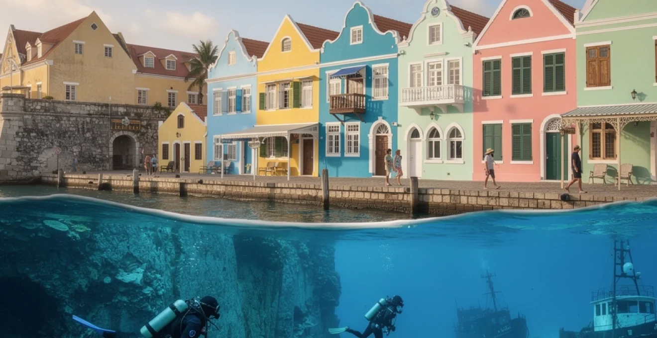 Joyau méconnu des Antilles néerlandaises, Curaçao fascine par la richesse de son patrimoine architectural et l’exceptionnelle biodiversité de ses écosystèmes marins. Cette île de 444 kilomètres carrés, située à seulement 65 kilomètres des côtes vénézuéliennes, offre un contraste saisissant entre les façades colorées de Willemstad, inscrites au patrimoine mondial de l’UNESCO depuis 1997, and les récifs coralliens préservés qui s’étendent le long de sa côte sous le vent. L’héritage colonial néerlandais se mélange harmonieusement avec les influences caribéennes, créant une identité architecturale unique, tandis que les eaux cristallines abritent des formations coralliennes parmi les plus spectaculaires des Caraïbes. Cette combinaison exceptionnelle entre patrimoine culturel et richesse naturelle fait de Curaçao une destination privilégiée pour les passionnés d’architecture coloniale et les amateurs de plongée technique.
