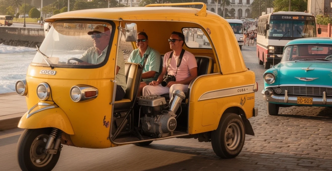 Le Coco Taxi se distingue par son équilibre singulier : assez rapide pour couvrir plusieurs quartiers en une heure, assez compact pour s’aventurer dans le cœur historique, suffisamment ouvert pour vous faire sentir l’ambiance, mais doté d’un moteur pour éviter l’effort physique du vélo-taxi. On pourrait le comparer à un « tuk-tuk caribéen », mais avec une identité visuelle et culturelle proprement cubaine. Pour beaucoup de voyageurs, cette combinaison en fait le meilleur compromis entre découverte, confort raisonnable et budget maîtrisé.