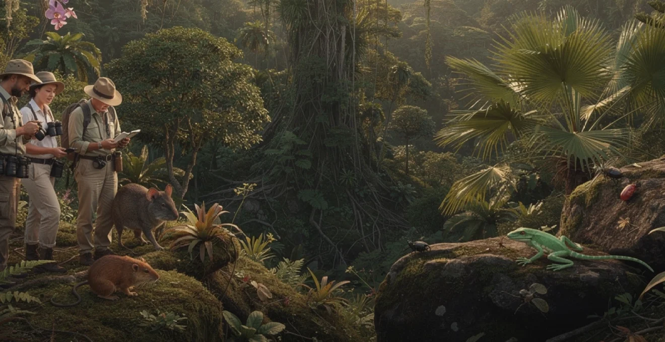 Au-delà des chiffres, c’est la diversité des formes de vie végétale qui frappe : arbres géants, arbustes rabougris adaptés aux sols pauvres, herbes aromatiques, broméliacées réservoirs d’eau, orchidées épiphytes multicolores… Chaque strate de la forêt et chaque microhabitat – rive de rivière, paroi rocheuse, clairière éclairée – accueille des assemblages spécifiques. Cette biodiversité floristique n’est pas seulement un objet d’étude scientifique : elle joue un rôle fondamental dans la stabilisation des sols, la régulation hydrologique et la fourniture de ressources alimentaires et médicinales pour les communautés locales.