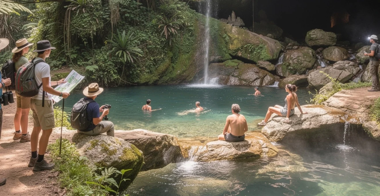 L’accès au Salto de Rocío se fait généralement dans le cadre d’excursions guidées, ce qui permet de bénéficier d’explications sur la géologie locale et les particularités hydrologiques du site. Les guides recommandent souvent de ne pas rester trop longtemps dans l’eau, surtout pour les personnes sensibles au froid ou ayant des problèmes cardiovasculaires. Une bonne stratégie consiste à alterner courtes immersions et périodes de repos au soleil sur les rochers environnants, un peu comme on le ferait dans un sauna nordique. Pour les amateurs de photographie, l’endroit est idéal : la lumière filtrée par la canopée, la brume légère de la cascade et les reflets sur l’eau créent des ambiances spectaculaires, surtout en début de matinée.